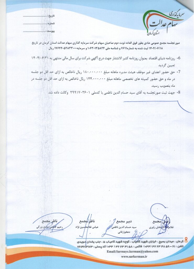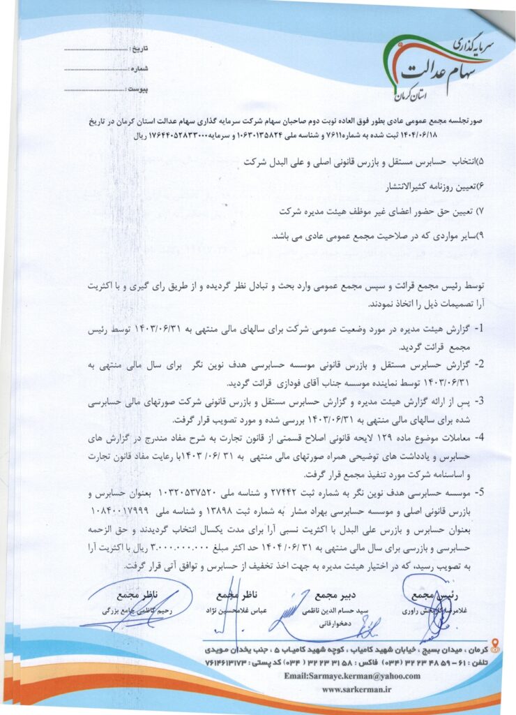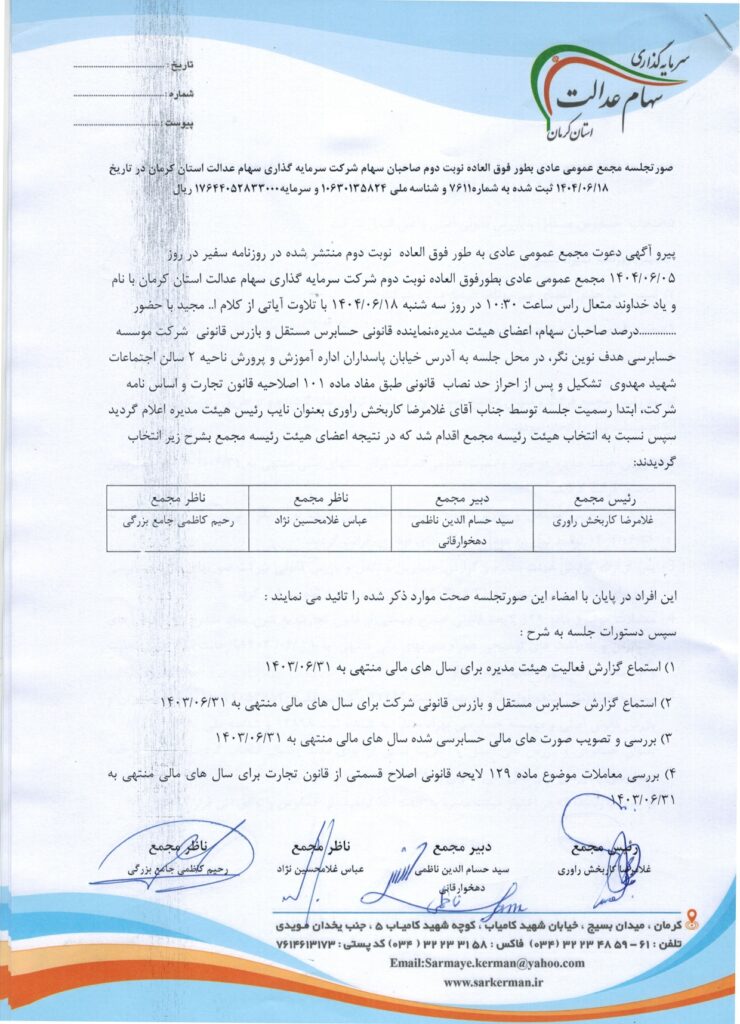 صورت جلسه مجمع عمومی عادی بطور فوق العاده نوبت دوم